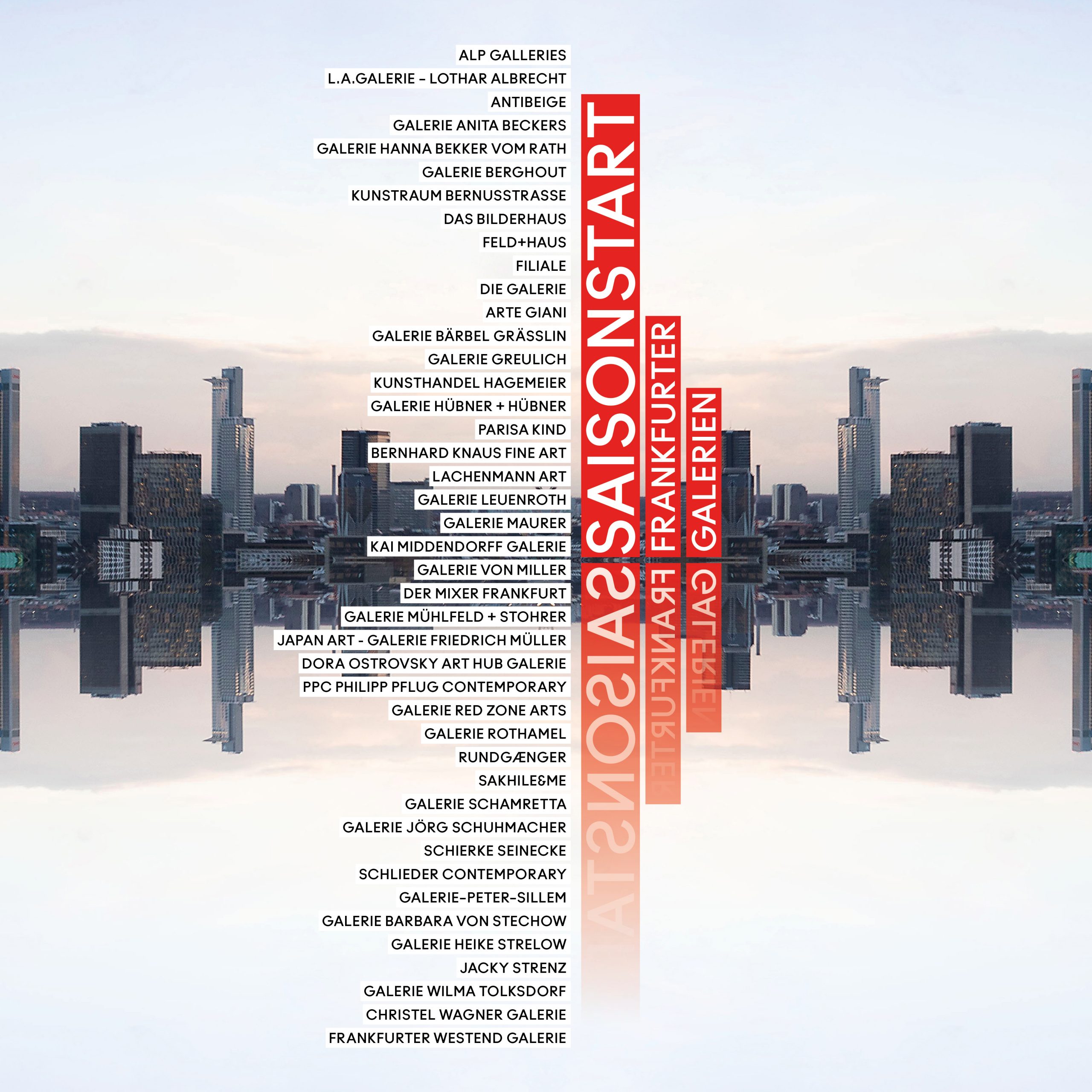 wir freuen uns, teil der frankfurt art experience zu sein: www.frankfurtexperience.art. zum 26. saisonstart der galerien frankfurt am ersten septemberwochenende präsentieren wir zwei künstler (vernissage by invitation only):
