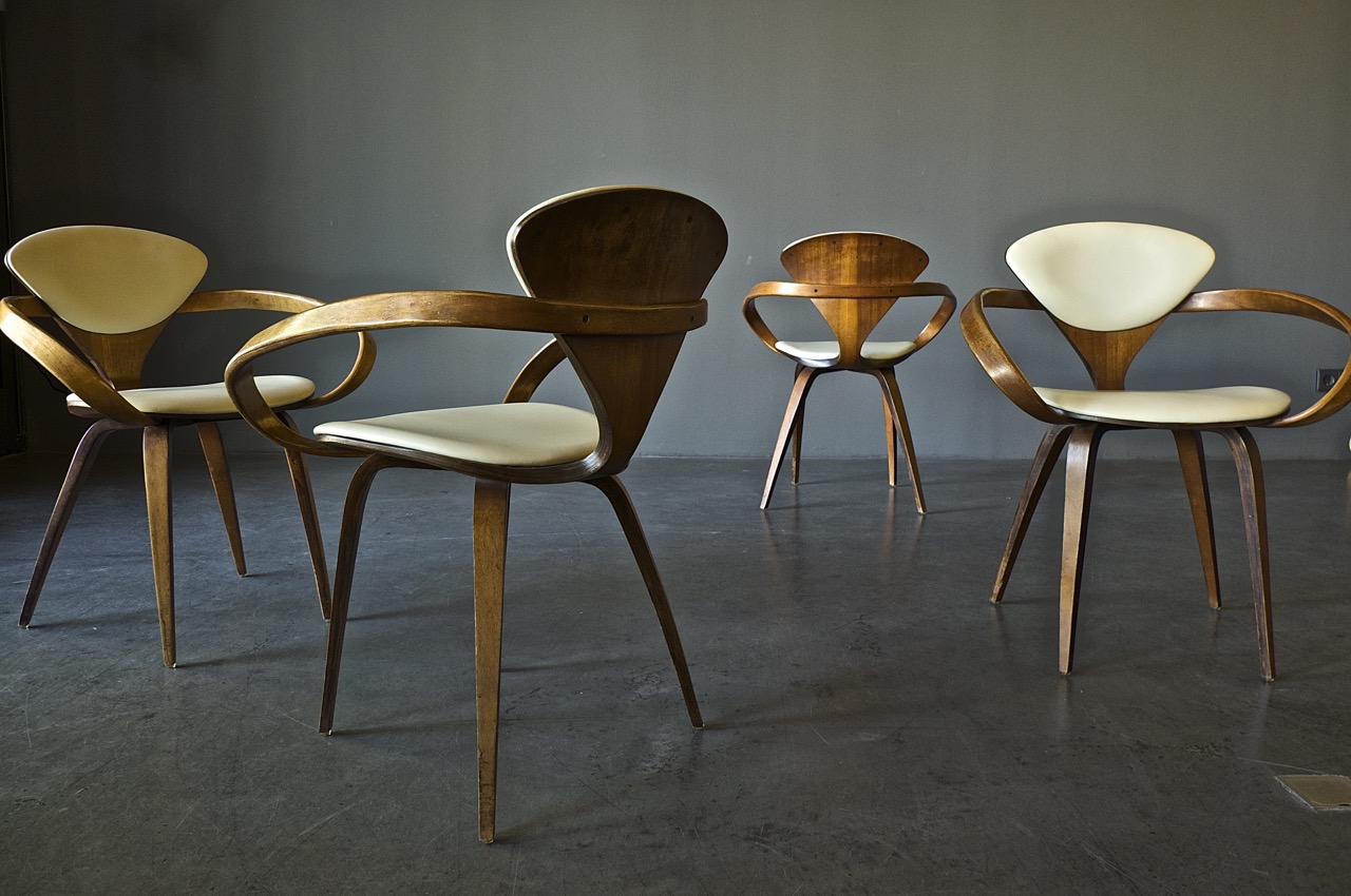 Allerdings hatte die die Firma Plycraft, als ausführende Produzenten für Herman Miller, nun ungenutzte Maschinen, Material und KnowHow. George Nelson empfahl den befreundeten Architekten Norman Cherner, der ein stabiles und günstigeres Design entwickeln sollte. Cherner entwarf diesen Stuhl, Plycraft stornierte den Auftrag und produzierte den Stuhl dennoch – was Cherner erst in einem Möbelladen feststellt, als er das abgelehnte Design im Verkaufsraum entdeckt. Er verklagt die Firma 1961, gewinnt den Prozeß, der Stuhl wird weiter verkauft und Cherner erhält nicht nur sein Geld, sondern hat mit diesem Entwurf auch eine Ikone des amerikanischen Möbeldesigns entwickelt.