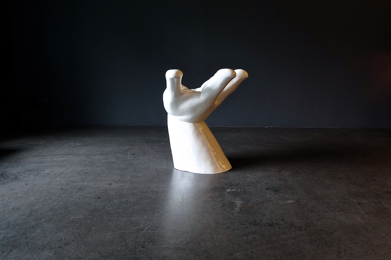 Manchmal finden wir Möbel oder Objekte, die man einfach mitnehmen muss. Wie dieser Handhocker – oder Hockerhand? Ist ja auch egal. Davon gab es wirklich nur eine handvoll, entworfen und gefertigt für die exclusive Kaufhauskette De Bijenkorf aus Holland. Dass die Spass an guter Architektur und Design haben zeigt schon deren Kaufhaus in Rotterdam, das von Mies van der Rohe entworfen und gebaut wurde. Die Hocker wurden Ende der 70er designt, sind aus Fiberglas gefertigt und dann lackiert. Dieses Teil landet definitiv bei uns zu Hause, sollte es nicht schnell anderswo ein neues zu Hause finden.
