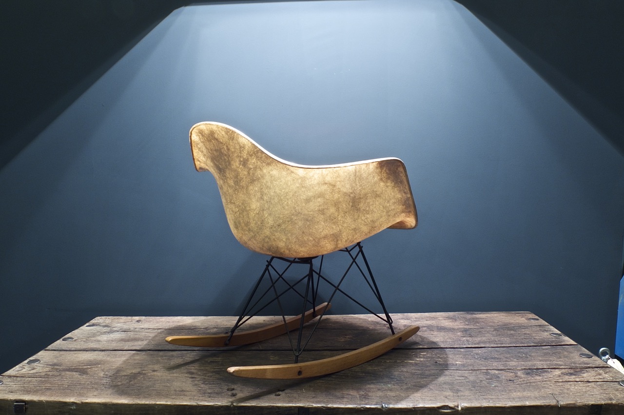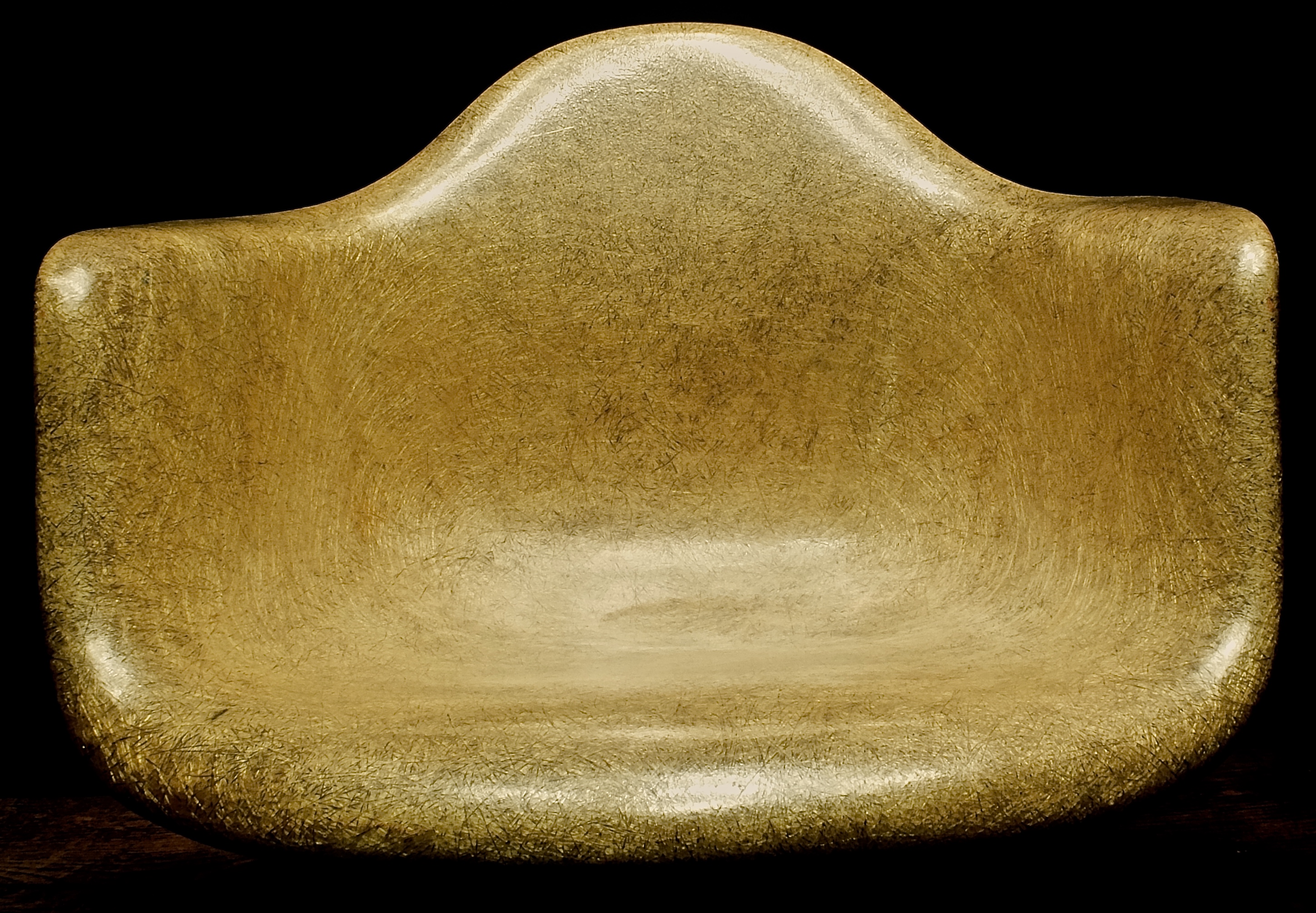We have no idea what happened here. The first generation fiberglass arm shell has a patina that glows almost golden. Never seen before and for us the decisive reason to buy this chair. Also here it concerns a first generation with Rope Edge, the edition amounted to exactly 2,000 pieces.
