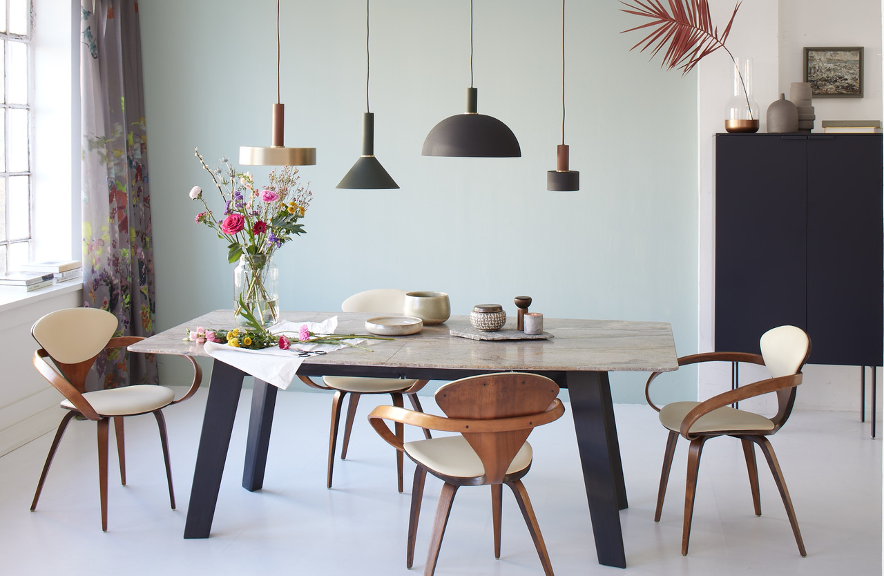 For the current Schöner Wohnen Peter Fehrentz has again staged some of our furniture. This time a set of 4 Cherner Chairs, whose organic form contrasts strongly with the graphic marble table. We like.