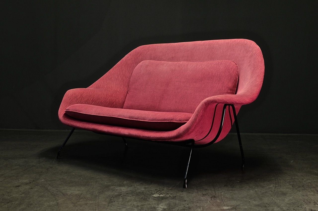 Unser Womb Settee ist ein mindestens 65 Jahre altes Original und durch die kurze Bauzeit extrem selten. Wer sich ein alltagstaugliches Designobjekt in Museumsqualität in die Wohnung stellen will, hat hier eine der seltenen Chancen dazu. Entworfen 1948, Baujahr zwischen 1948 und 1951. Zustand: top.